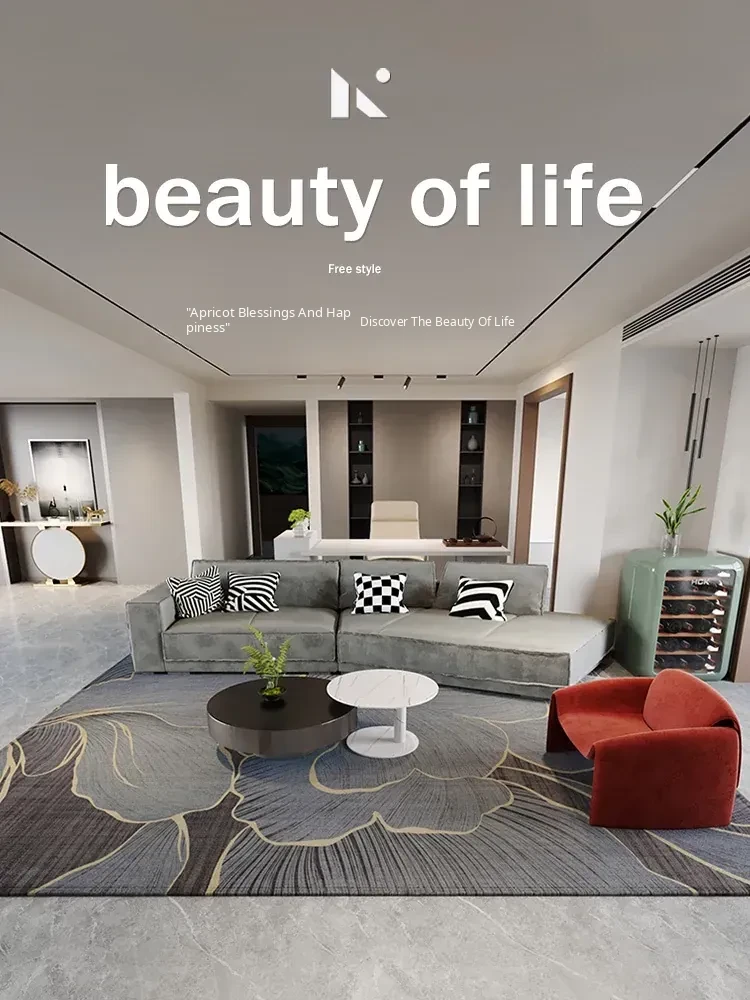Modern Italian Sofa Set with Coffee Table and Area Rug - Stylish and Minimalist Luxury Carpet for Living Room, Bedroom, and Office - New Arrival in Elegant Neutral Colors