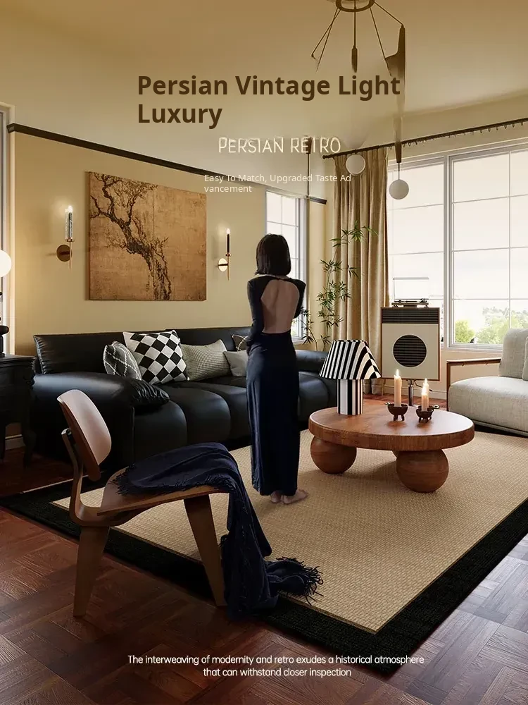 New Vintage-Inspired Living Room Carpet - High-End Sofa Mat, French Antique Style, Waterproof, Easy to Clean, Perfect for American Homes