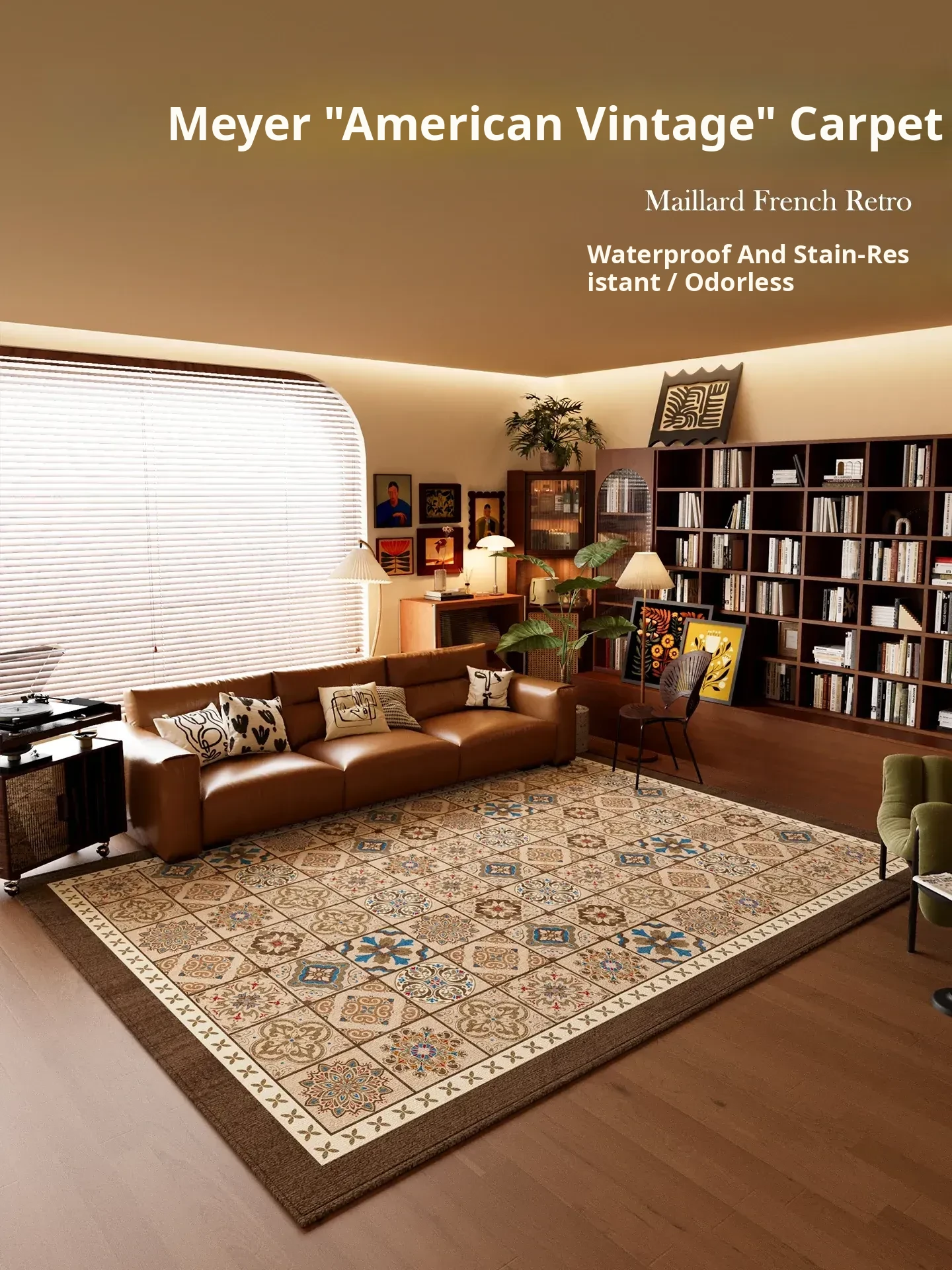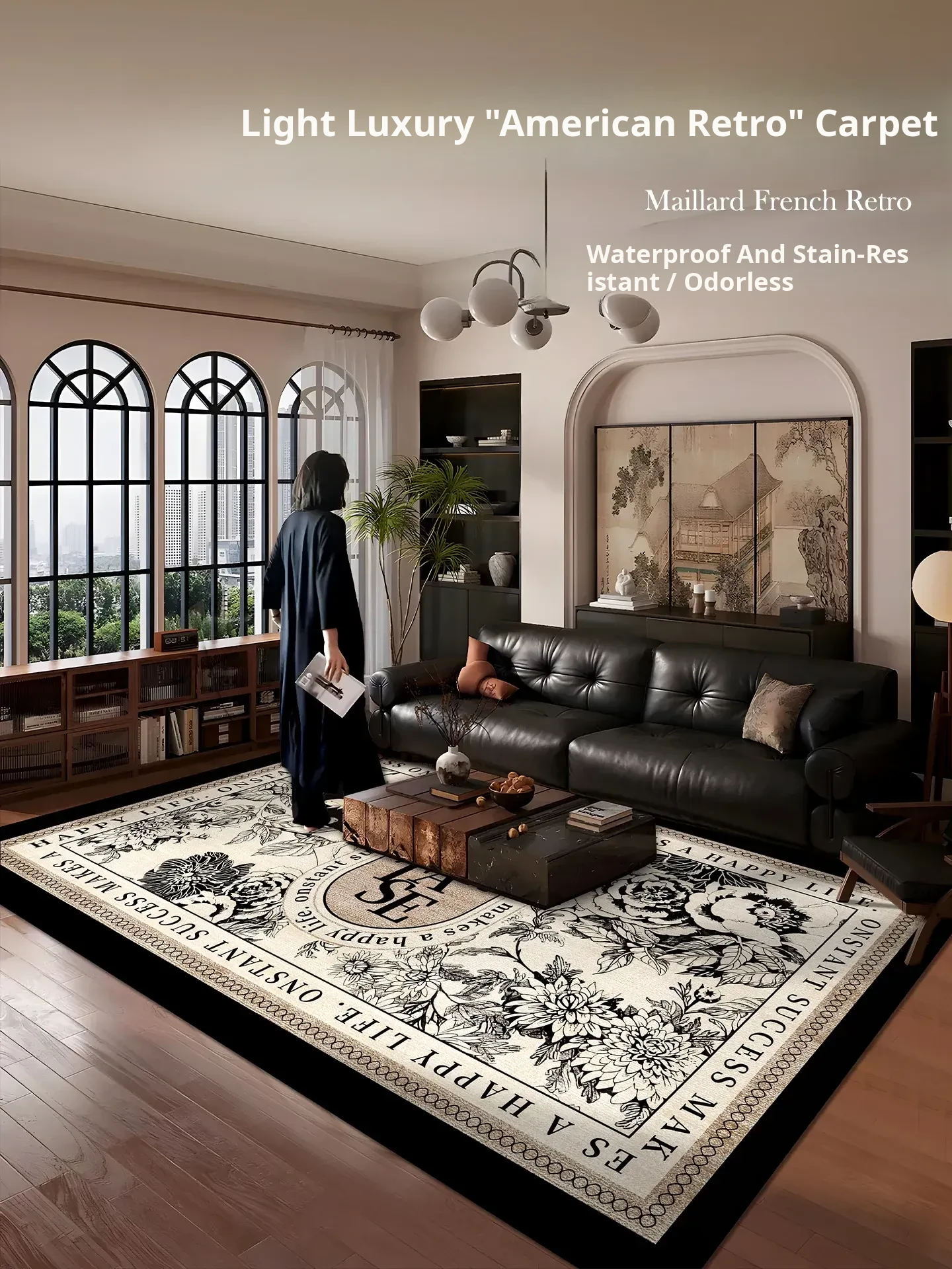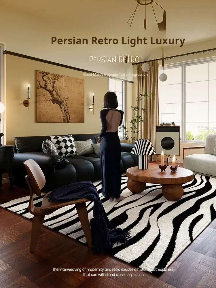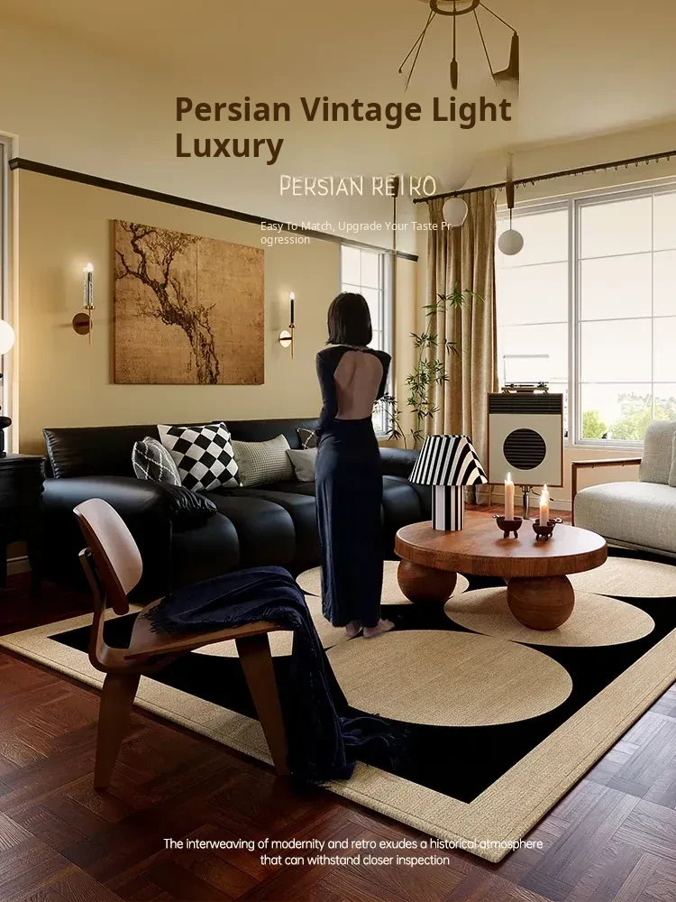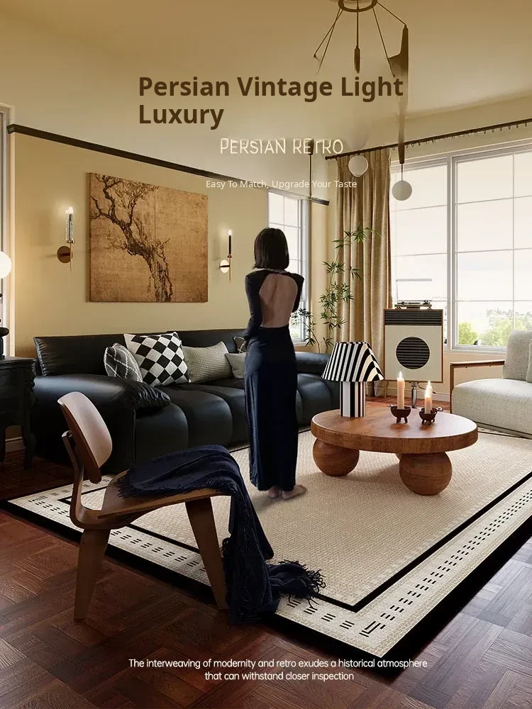 New Vintage American Style Living Room Carpet - Thick, Waterproof Sofa & Coffee Table Mat, No Wash Required, Perfect for Modern Homes
