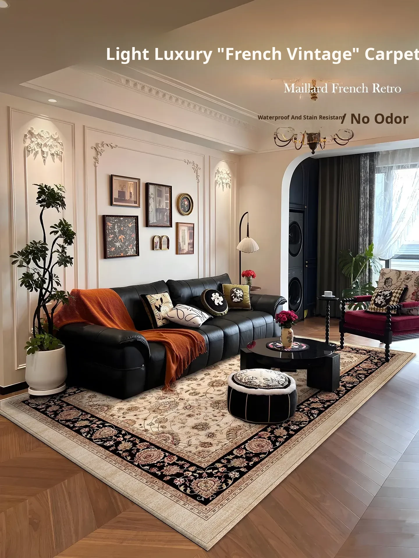 New Luxury French Vintage Area Rug for Living Room - Waterproof, Washable, and Maintenance-Free Mat for American Retro Style Home Decor
