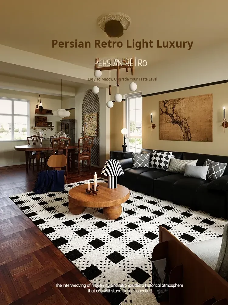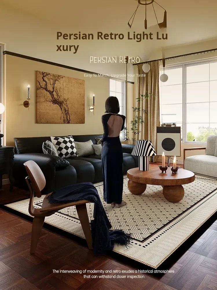 Vintage Living Room Carpet - Stylish Sofa Mat, American Coffee Table Rug, French Design, No Wash Required, Premium Quality European Bedside Waterproof Door Mat