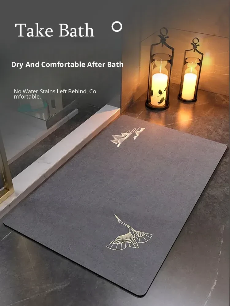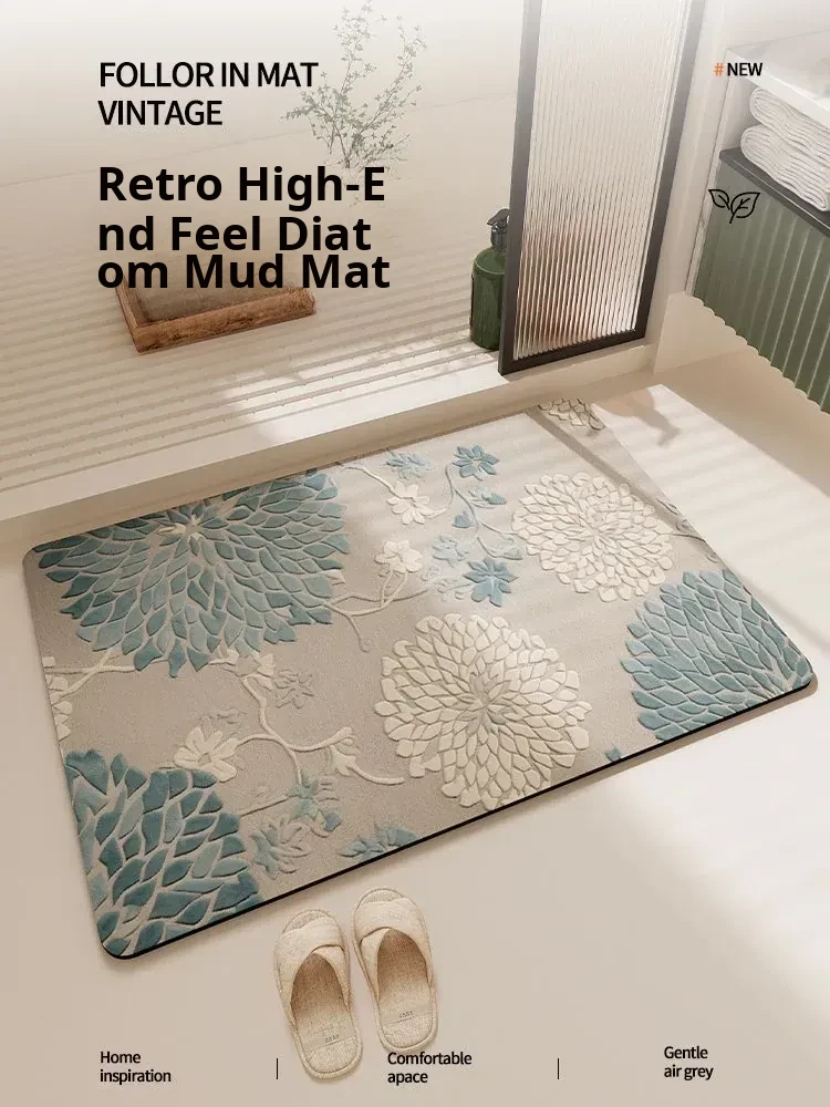 New Chinese Style Bath Mat - Super Absorbent Diatomite Mat for Bathroom Door, Non-Slip, Quick-Drying, and Dirt-Resistant for Home Use