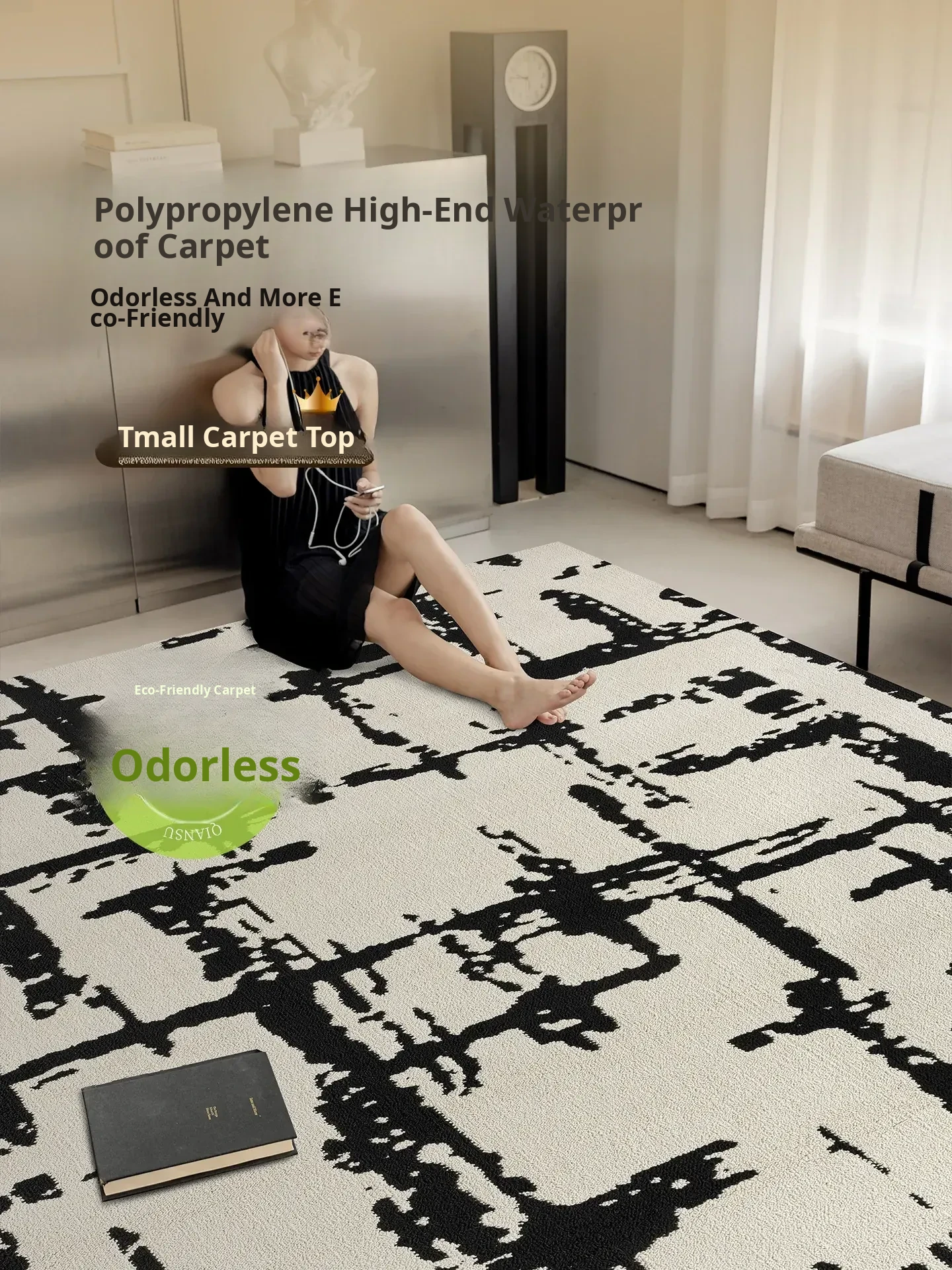 New Luxury Waterproof Carpet for Living Room - Thick, Easy-Clean Sofa Mat & Bedside Rug in Minimalist Style, Durable and Stain-Resistant Polypropylene Design