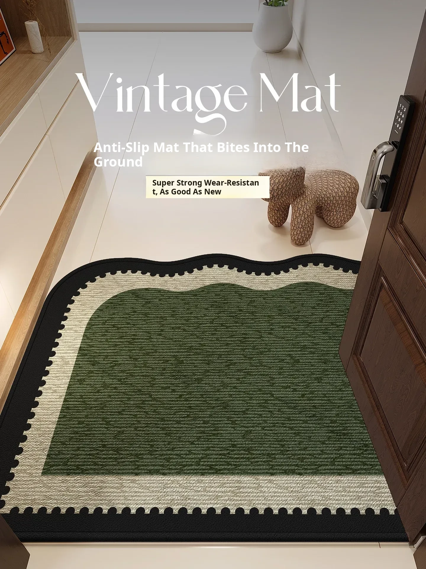 2026 New Vintage Style Premium Green Entryway Door Mat - Customizable Non-Slip Accent Rug for Hallway Use