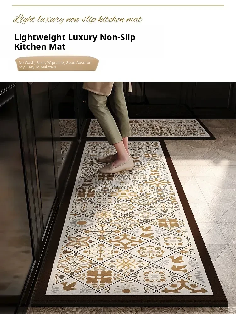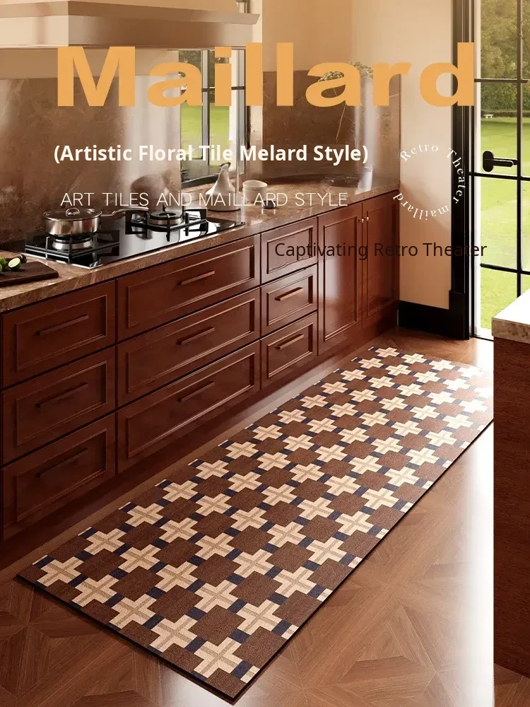 Retro PVC Kitchen Mat - Non-Slip, Oil-Resistant, and Absorbent Floor Rug, Easy to Clean and Waterproof, Perfect for Your Home Decor