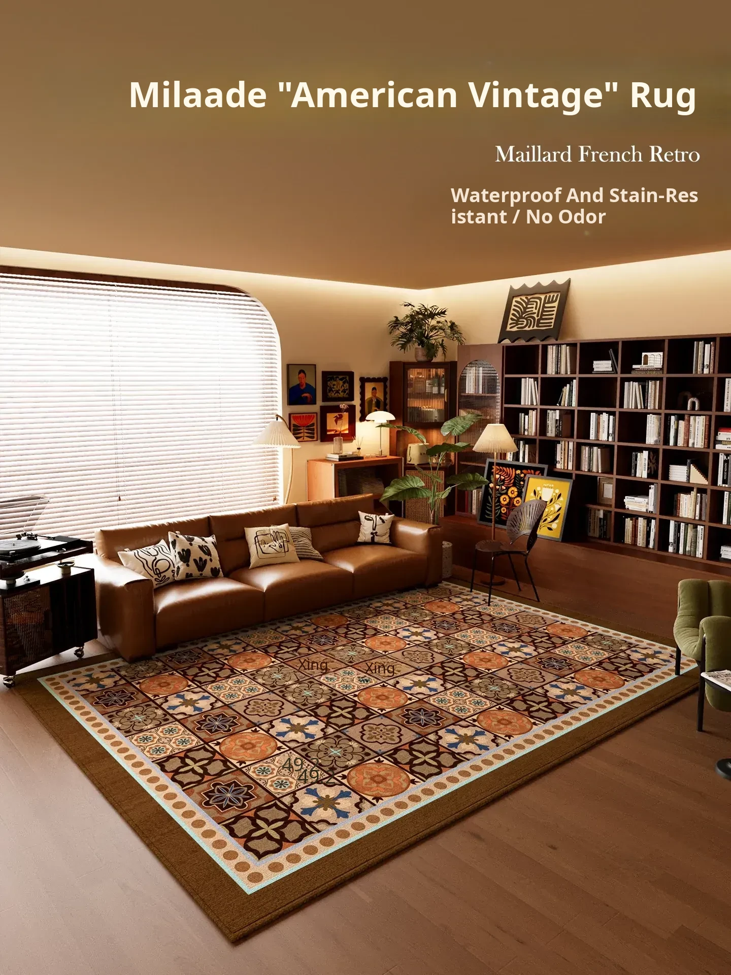 Vintage American Area Rug for Living Room - Stylish Waterproof and Stain-Resistant Sofa Mat, Easy-Clean Bedroom Bedside Blanket, Perfect Addition to Your Coffee Table - New Design!