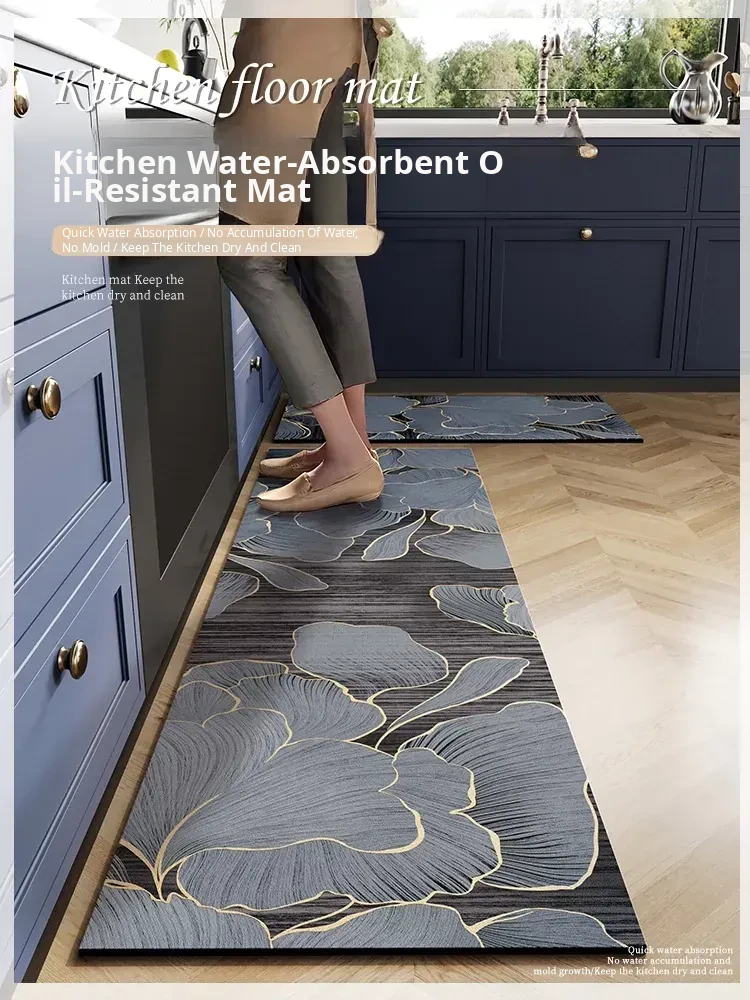 Non-Slip, Oil-Resistant Kitchen Floor Mat - Easy to Clean, Absorbent, and Dirt-Resistant PVC Door Mat with Diatom Mud for Ultimate Comfort and Safety
