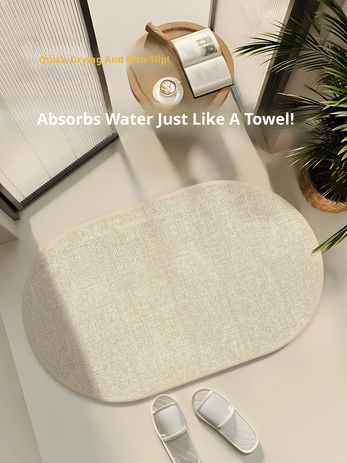 Creamy Bathroom Mat - Highly Absorbent, Non-Slip Diatomaceous Floor Carpet, Quick-Drying, Thickened, Waterproof Bathroom Rug for Easy Care at Home