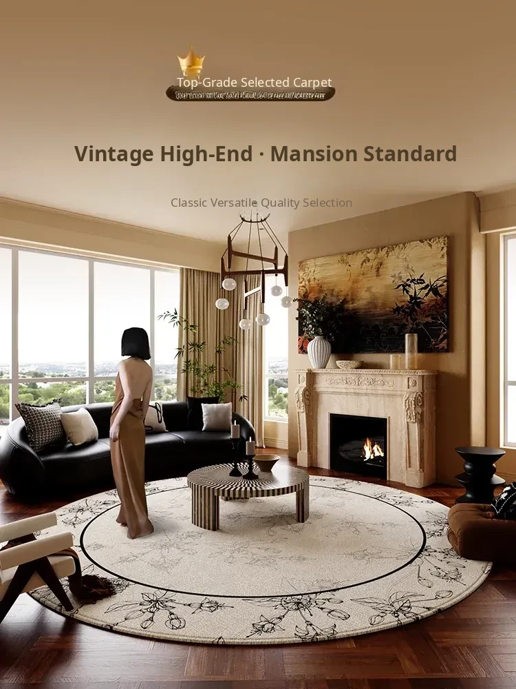 Vintage Waterproof French Style Round Living Room Carpet - Modern Sofa Mat, Bedroom Area Rug, Coffee Table Pad, Easy to Clean and Maintain, Perfect for Bedside Use.