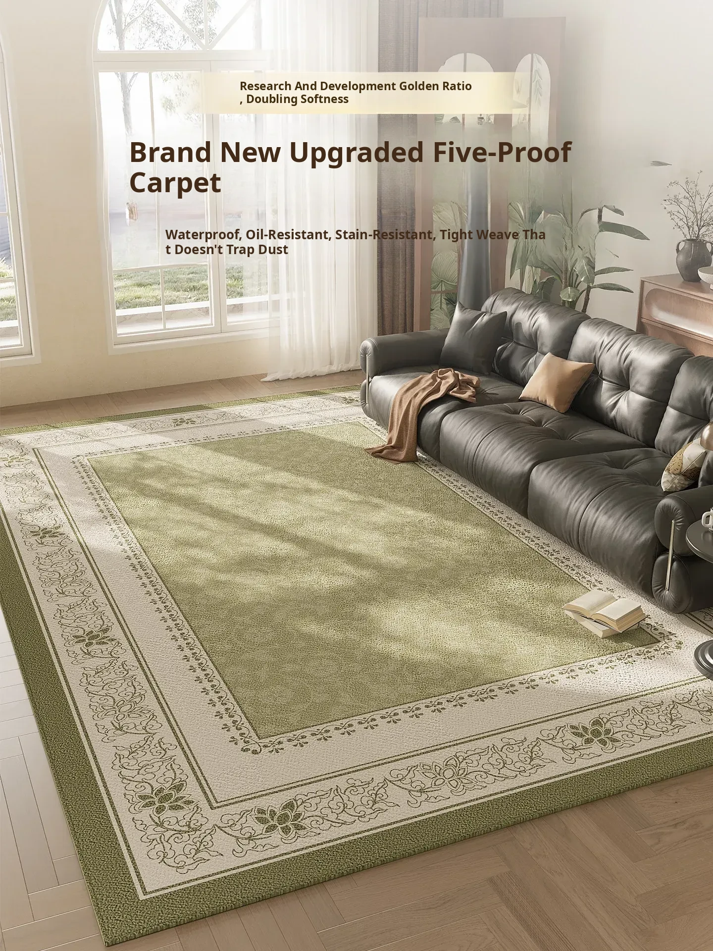 New Vintage-Inspired Living Room Carpet - Premium Sofa Mat for Home Use, French Style, Easy-Clean Coffee Table Mat, Thick, Waterproof & Wipeable