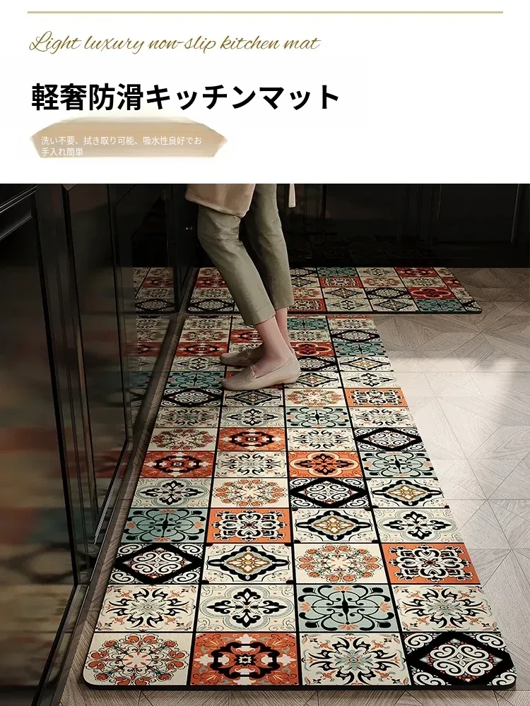 キッチン用防滑・防油・拭き取り可能な防水マット!吸水性抜群のPVC製で、新デザインのレトロスタイル。快適で安全なキッチン空間を実現します!