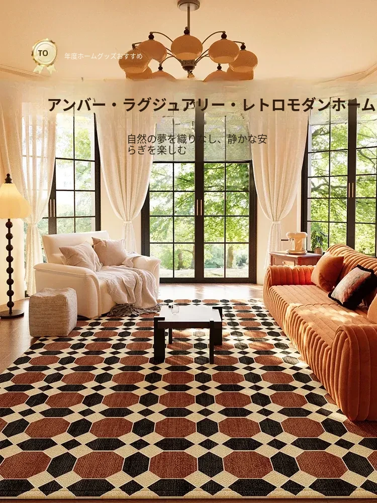 新作ラグマット - リビングルームに最適な高級感!モダンとレトロ融合のデザイン、軽やかでお手入れ簡単、撥水機能付きで安心。ソファやベッドサイドにもぴったりなアイテムです!