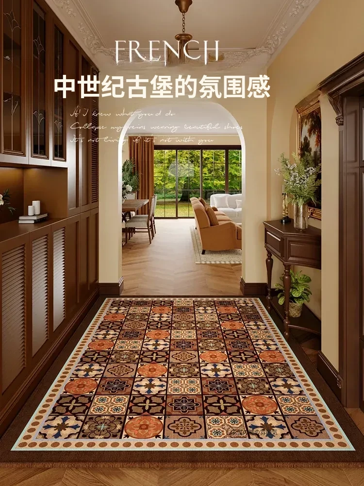 レトロヨーロピアンスタイルの高級リビングルームカーペット、アメリカンソファ用の洗濯不要防水マット、フレンチスタイルのベッドサイドテーブルにもぴったり!新作登場で、お部屋をおしゃれに演出します!
