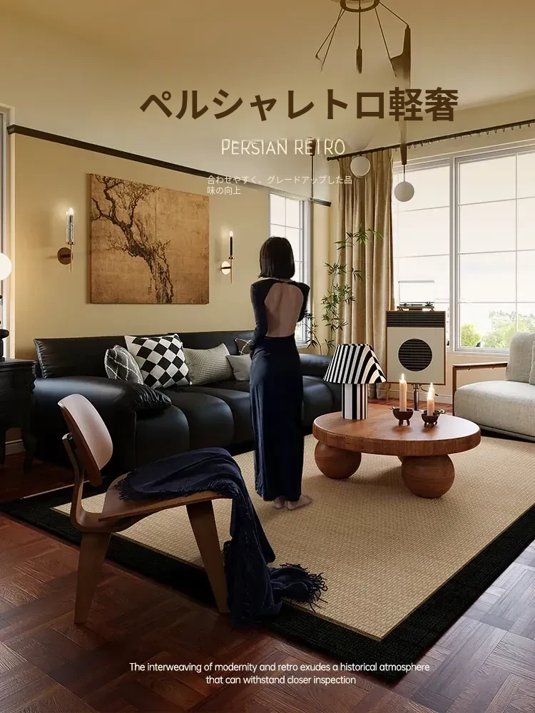 リビングルームにぴったり!新作高級アメリカンヴィンテージソファに合うフランス風アンティークコーヒーテーブル用ラグ。お手入れ簡単&防水加工で、家計にも優しい!