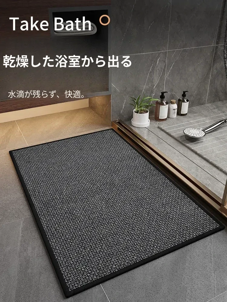 バスルーム用吸水マット - 滑り止め付きで安心!速乾性に優れ、トイレや洗面所の出入り口に最適なマット。清潔感あふれるデザインで、快適なバスタイムを演出します。