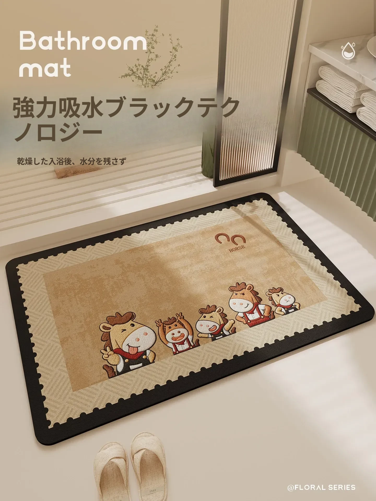 2026年新作!馬年特別デザインのバスルームマット - トイレ専用の滑り止めマット!吸水性抜群で、快適なトイレタイムをサポートします。おしゃれで実用的なバスグッズを手に入れよう!