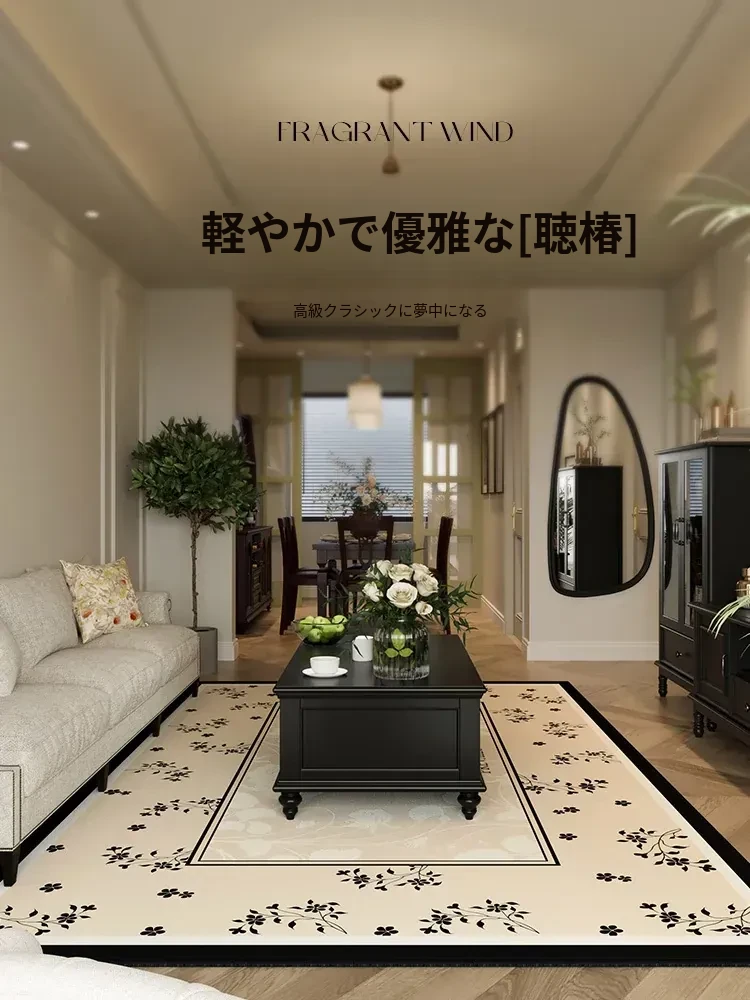 ヴィンテージ風リビングルームカーペット - アメリカンスタイルの高級ソファマット、テーブル用、欧風ベッドルームにも最適!フランス風デザインでお手入れも簡単、撥水加工で安心!