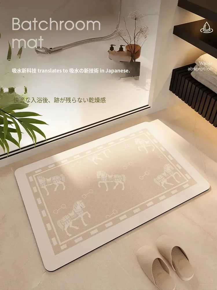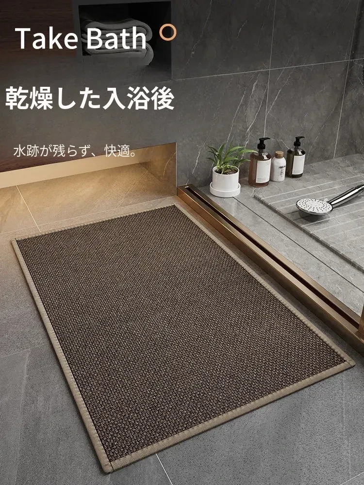 速乾性抜群!おしゃれなバスルーム用シリカゲルマット - 滑り止め機能付きで、トイレや洗面所の入口に最適な軽やかさとスタイルを実現!