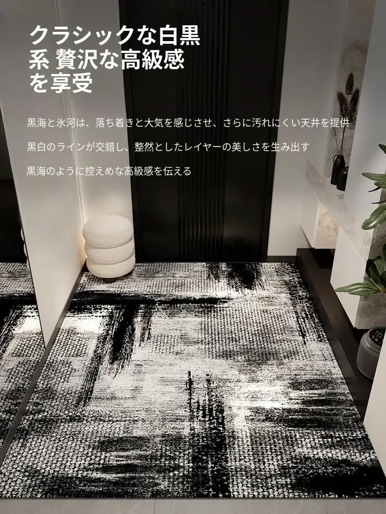 高級ブラック玄関マット新作!カスタマイズ可能な家庭用スリッパマット、リビングルームにもぴったり。滑り止め機能付きで、安全安心の入室をサポート!