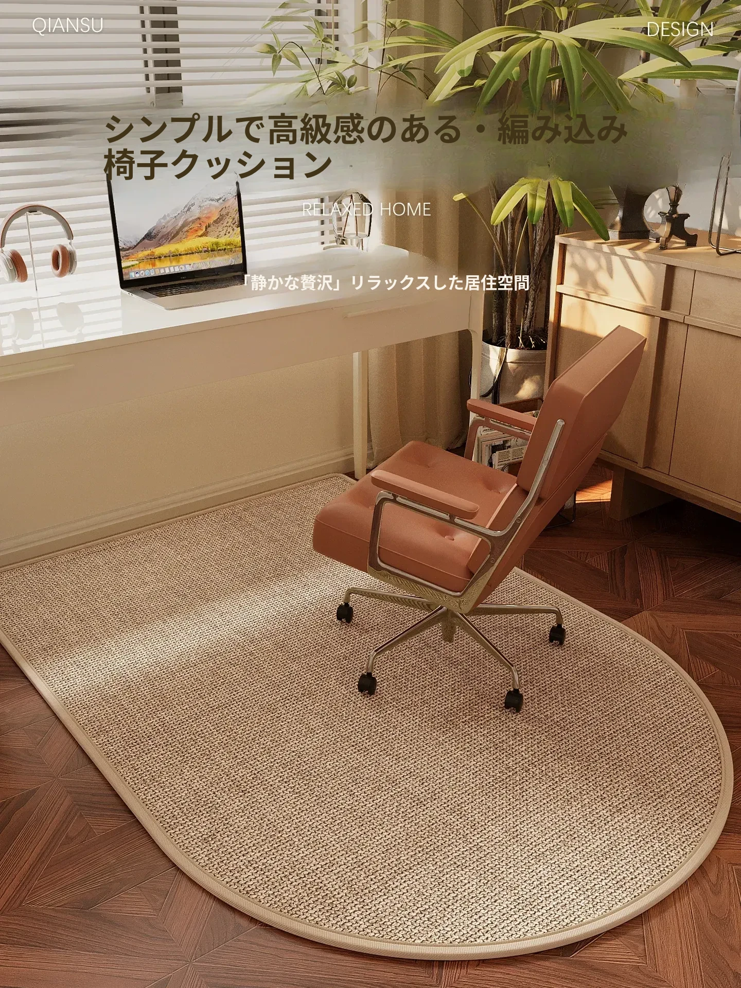 アーチ型カーペットチェアマット|回転椅子・オフィスチェア・化粧台用スツール・書斎用|滑り止め付き・和風リネン素材で静音設計|快適な座り心地を実現!