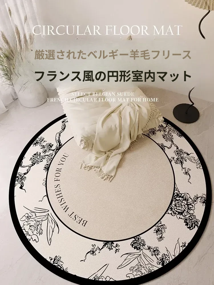 新作!フレンチスタイルの円形カーペット - リビングや寝室にぴったりの高級感溢れるデザイン。洗濯不要で、おしゃれなソファやヴィンテージロッキングチェア、バルコニーにも最適!