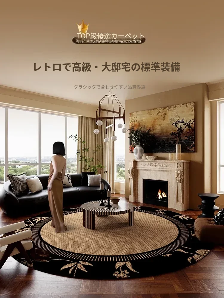 ヴィンテージ風のラウンドカーペット、リビングや寝室に最適!高級感漂うデザインで、コーヒーテーブルを引き立てます。防水&お手入れ簡単で、スタイリッシュな空間を演出!新作登場!