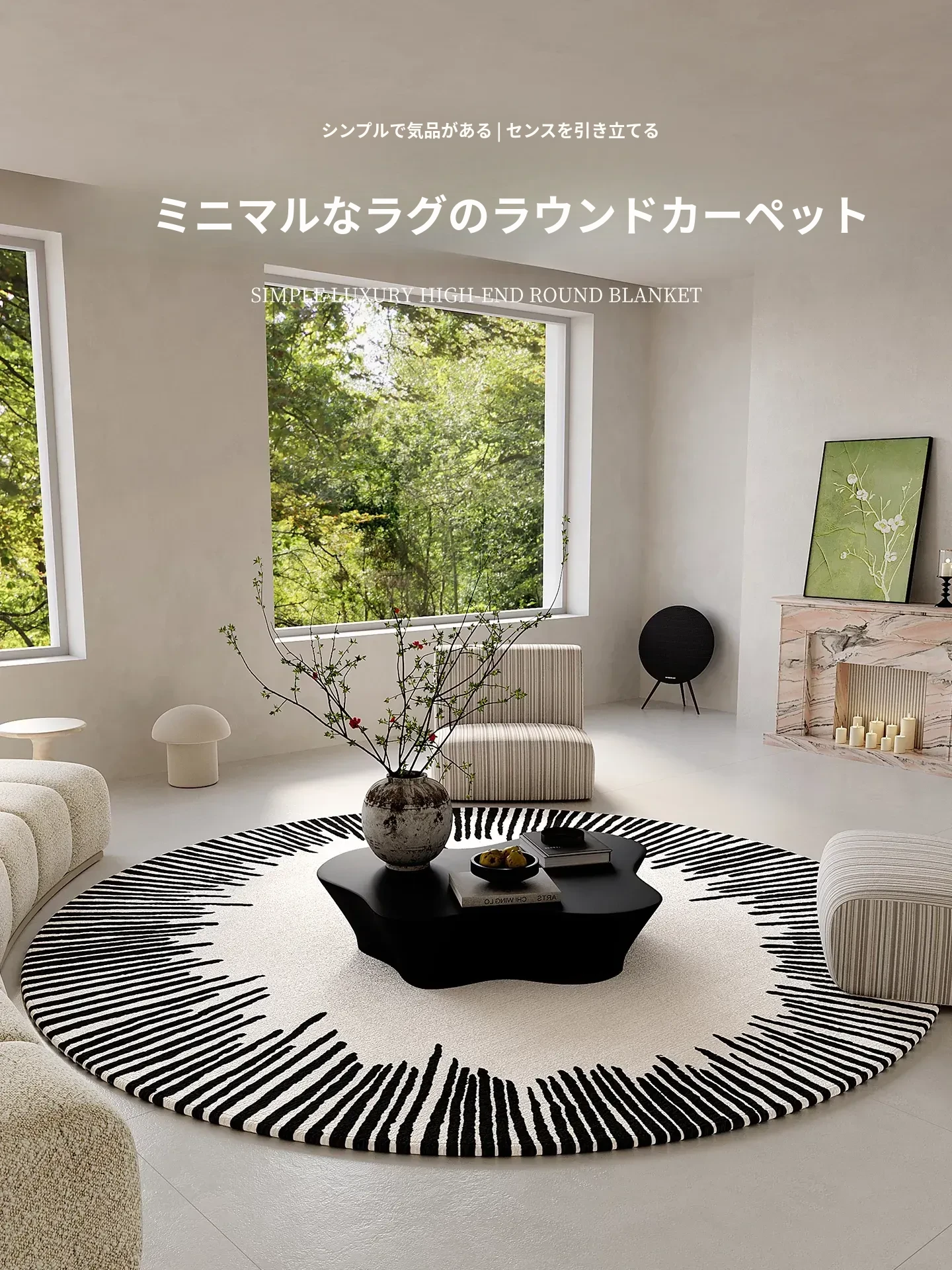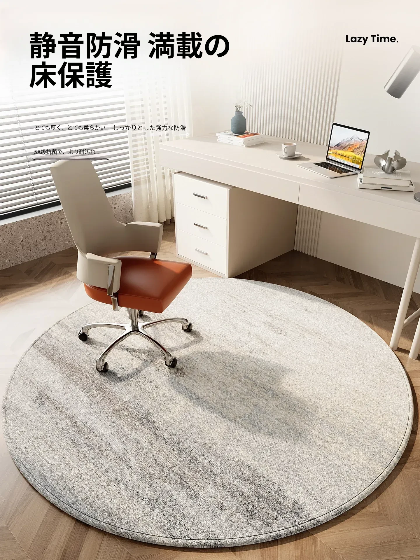 おしゃれで快適なラウンドカーペット!寝室やリビング、ダイニングにぴったり。コンピューターチェアやメイク台、書斎にも最適なデザイン。どんなインテリアにも合う、柔らかい質感で足元を優しく包みます。