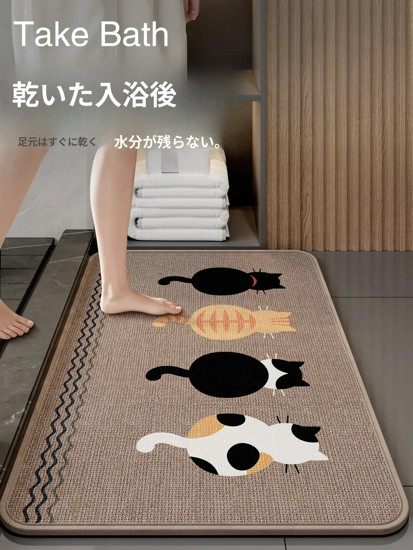 高品質バスルームマット!吸水性抜群で滑り止め機能付き、洗濯不要の新型デザイン。トイレやバスタブの入り口に最適!おしゃれで快適な空間を演出します。