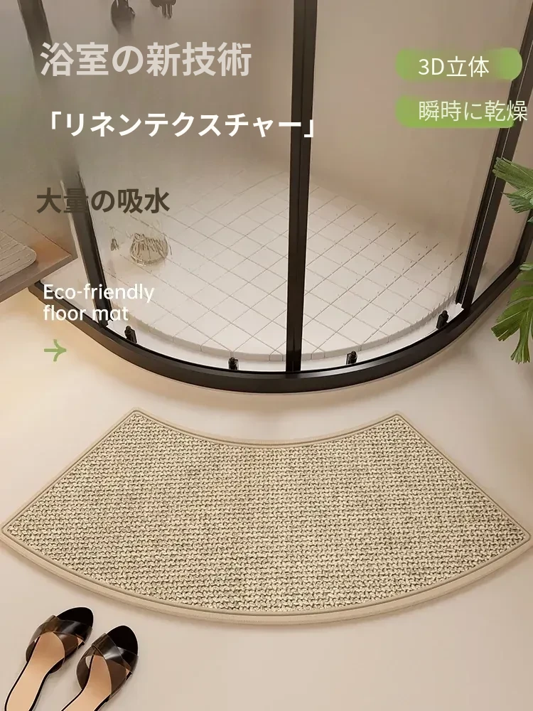 防水・吸水・滑り止め!おしゃれな弧形バスマット - トイレや洗面所に最適な快適マット!清潔感あふれるデザインで、毎日のバスタイムをもっと楽しく!