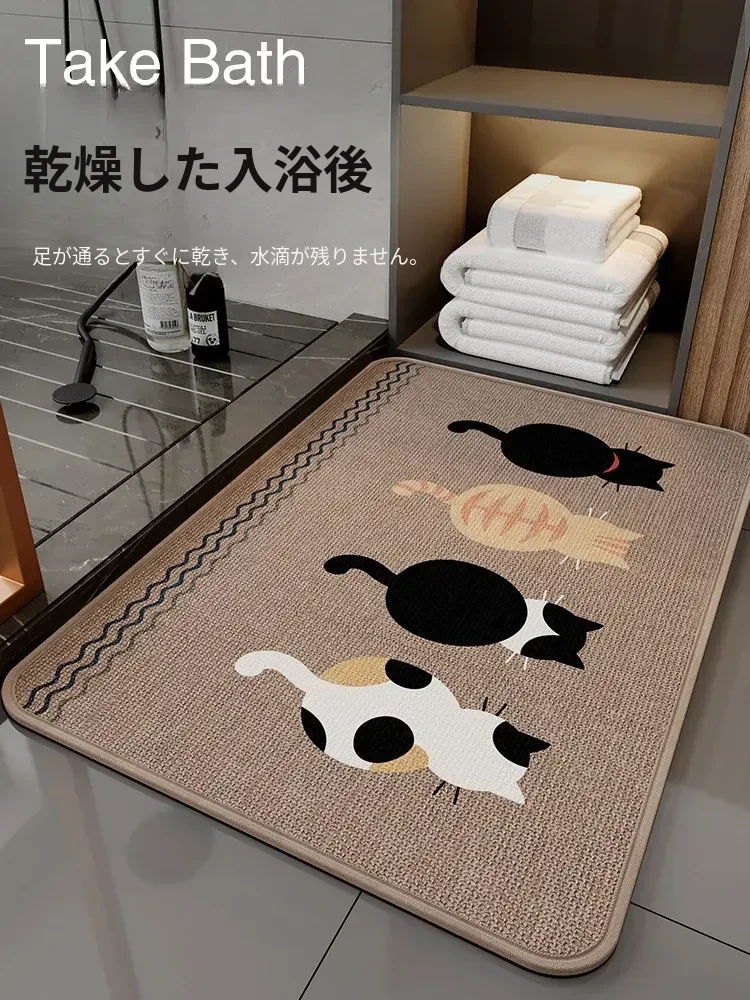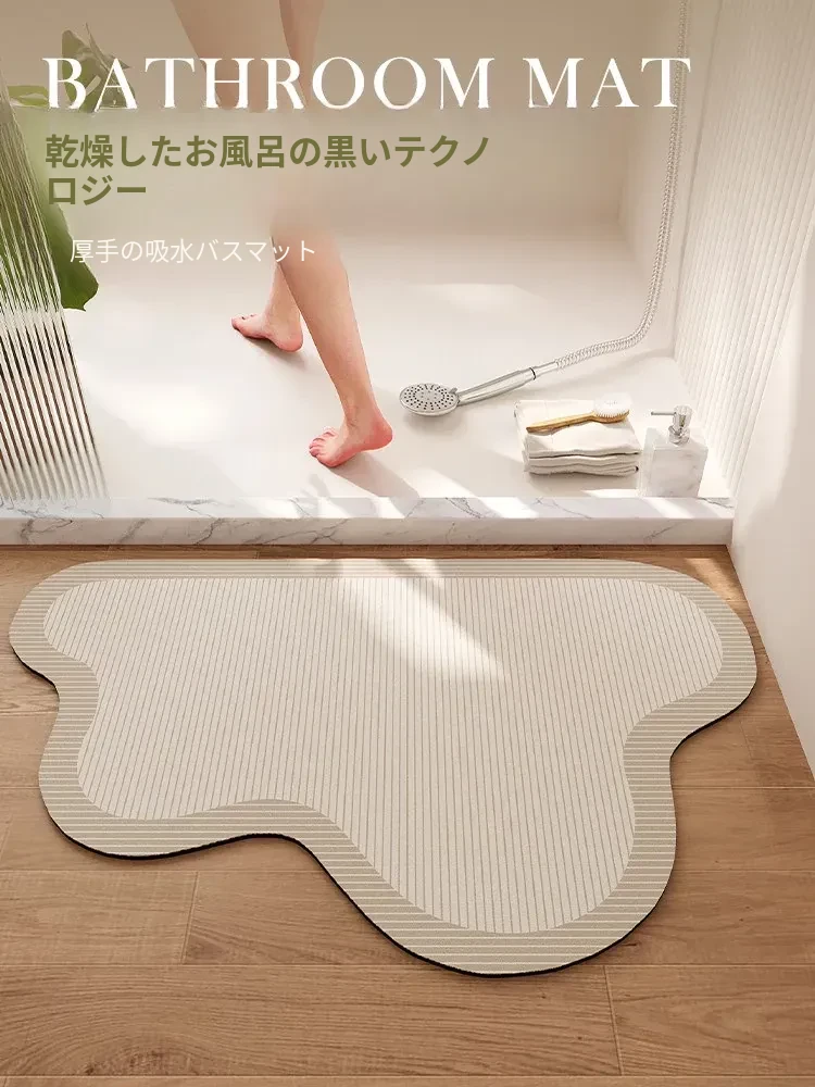 速乾バスルームマット|吸水性抜群の厚手滑り止め雲状珪藻土マット|トイレや玄関に最適!快適な足元を実現します!