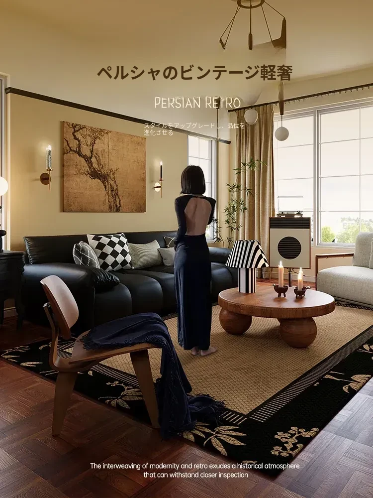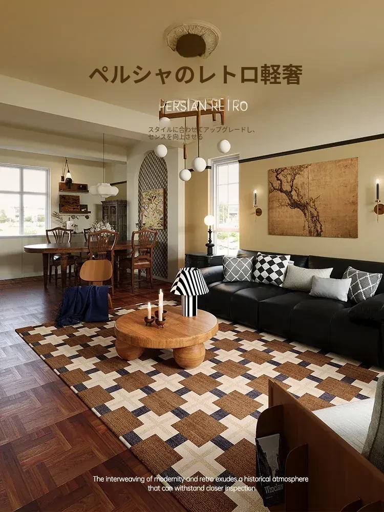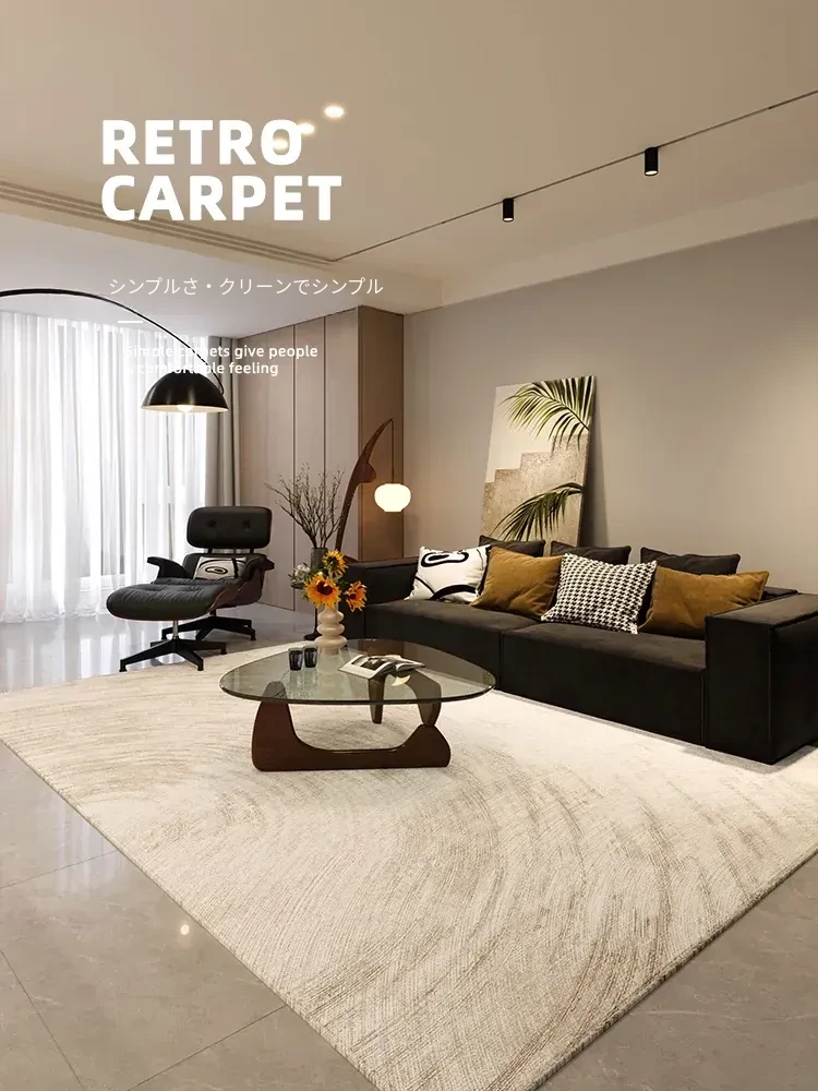 リビングルームカーペット・寝室マット|レトロで高級感あふれる軽奢スタイル|ベッドサイドにぴったりなシンプルモダンデザイン|ソファやコーヒーテーブルにも最適|家庭用新作・お手入れ簡単!