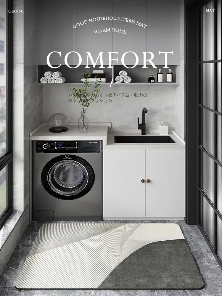 バルコニー用速乾防滑マット|洗濯機の水をしっかり吸収!防水デザインで洗面台や洗濯台に最適なシリカゲルマット|清潔感あふれる快適空間を実現!