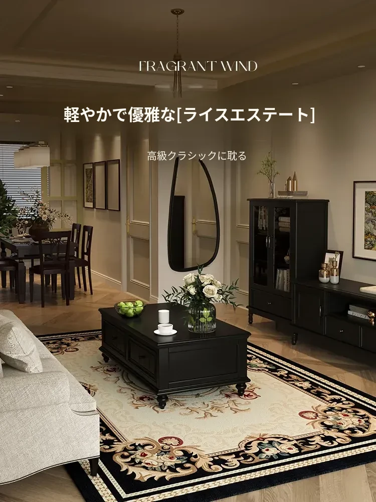 高級ビンテージカーペット|リビングソファ・テーブル用|汚れに強い防水&洗濯不要|フレンチスタイルの新作|ベッドサイドにも最適!おしゃれで機能的なインテリアを演出します。