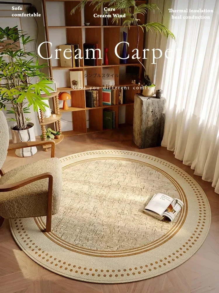 高級感あふれる2026年新作!ラウンドカーペット - 軽やかなラグジュアリーと古風なデザインが融合した、リビングやドレッサー、クローゼットにぴったりのヴィンテージスタイルのマット。おしゃれな椅子クッションとしても大活躍!