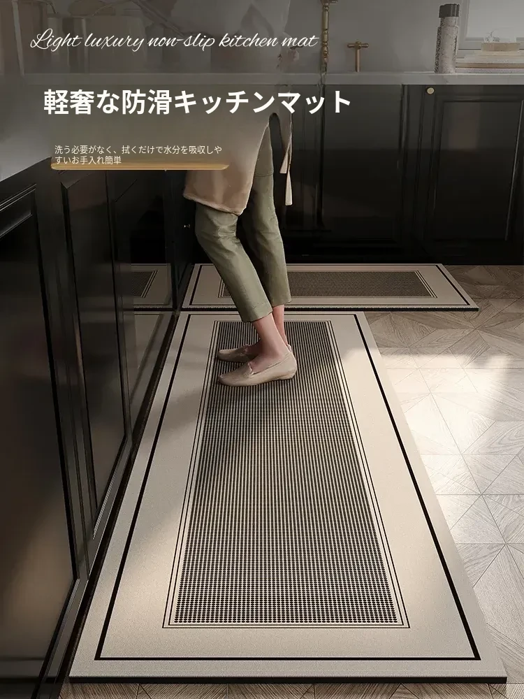 洗わずに使えるキッチンマット!滑り止め・防油・吸水性抜群!汚れに強く、拭き取り可能な防水ドアマット。高級感あふれるデザインで、あなたのキッチンをおしゃれに演出します。