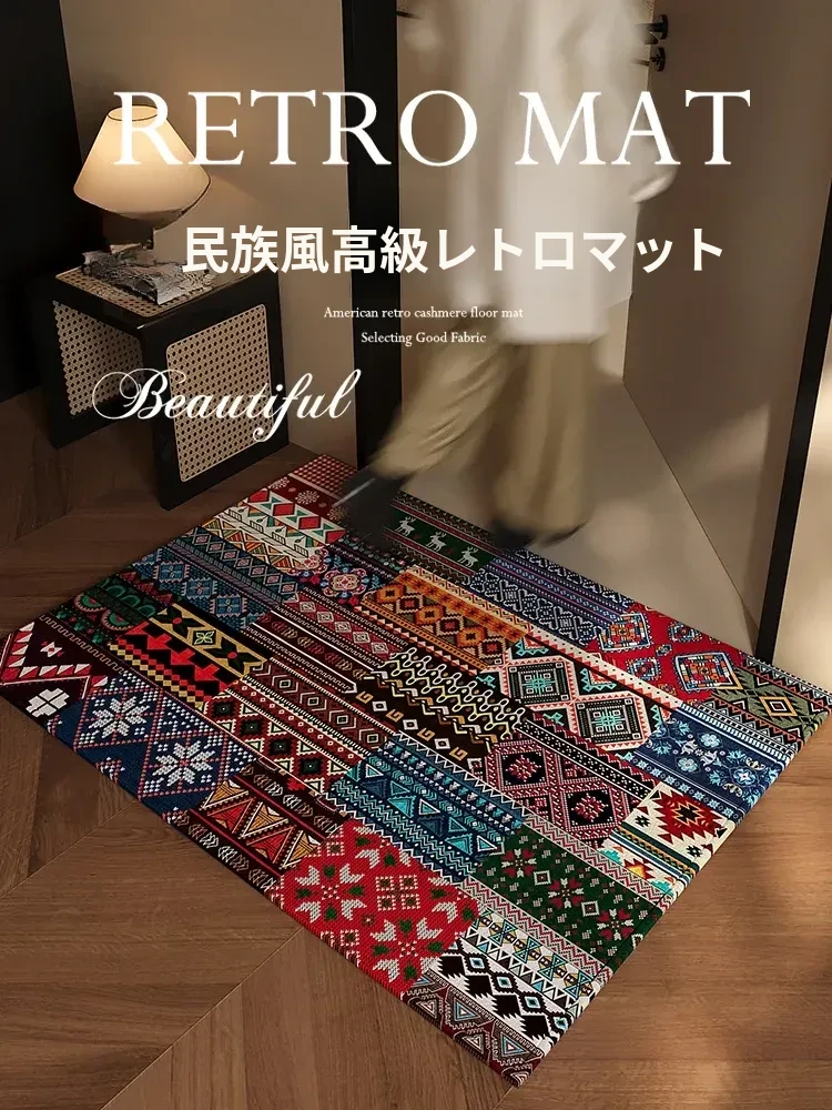 高級レトロデザインの滑り止め玄関マット - カスタマイズ可能でお手入れ簡単!家の入り口を華やかに彩る、快適な足元を実現するマット。リビングにもぴったり!